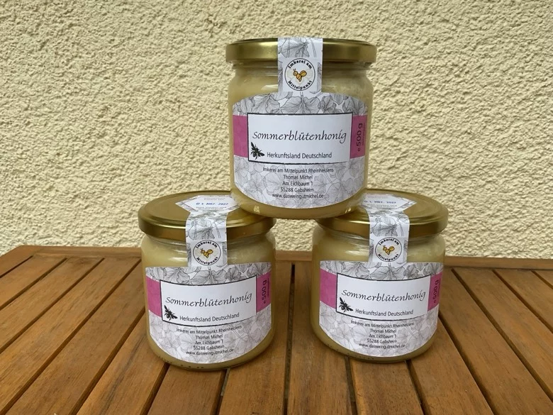 Der Sommerhonig ist von unseren Blühflächen geprägt, die vorwiegend aus Kornblume, Ringelblume, Klatschmohn, Dill, Sonnenblumen, Margariten und vielen mehr.